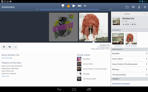 Overview: Pandora radio is a personalized radio service that streams music on your phone.