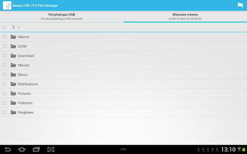 Description : Nexus USB OTG File Manager allows you to copy files from or to any USB mass storage device with a FAT32 file system using the USB OTB port of your device, tablet or phone. You can also manage your files on your USB device and in the internal memory: edit filenames, add directories, delete files.